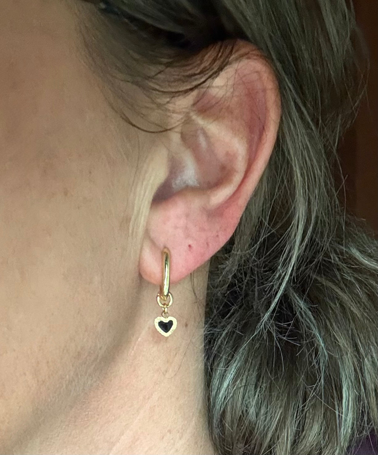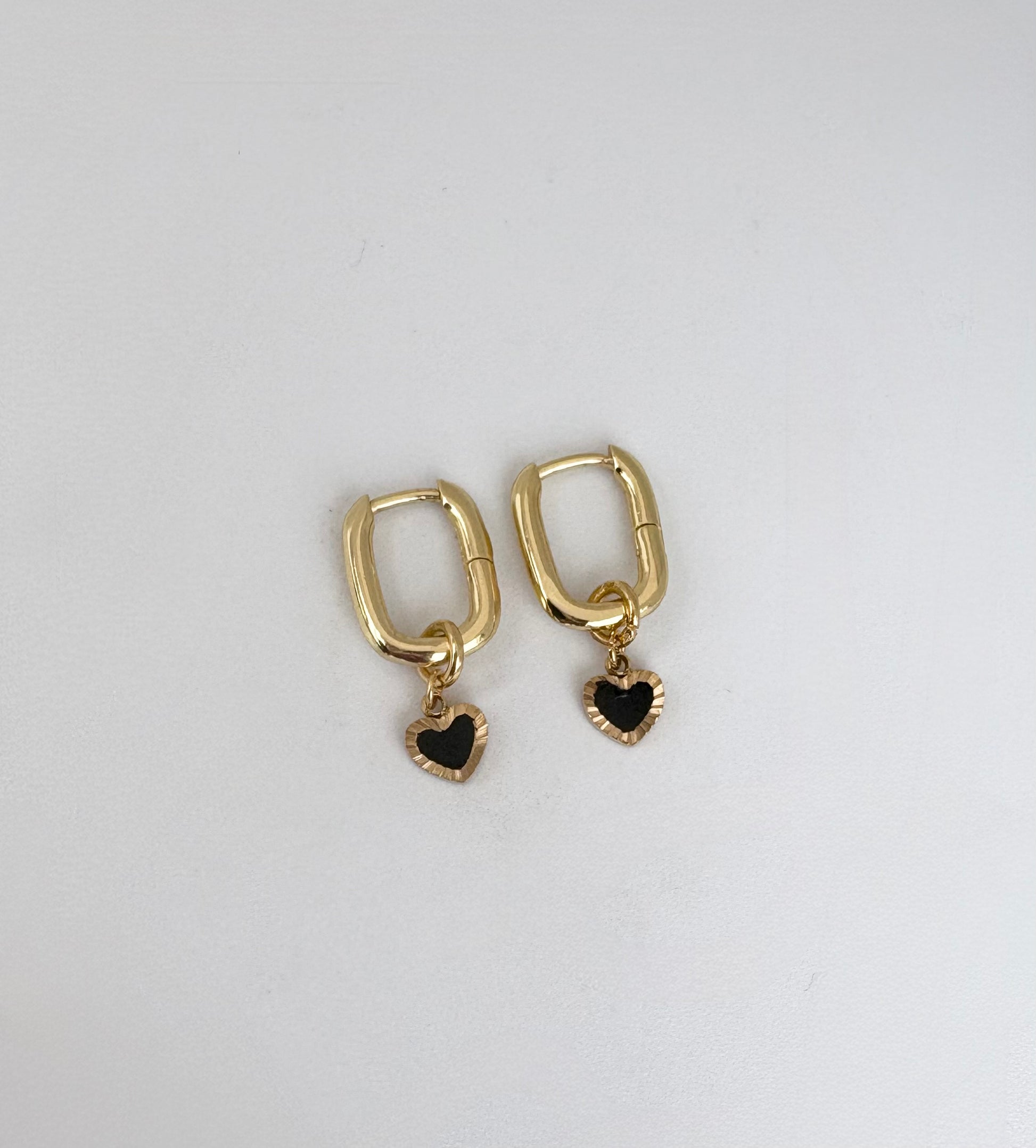 Deze schattige Gold-plated of Silver-plated oorbellen hebben een kliksluiting en subtiele stainless steel hartjes.