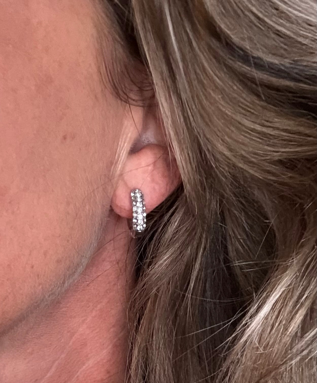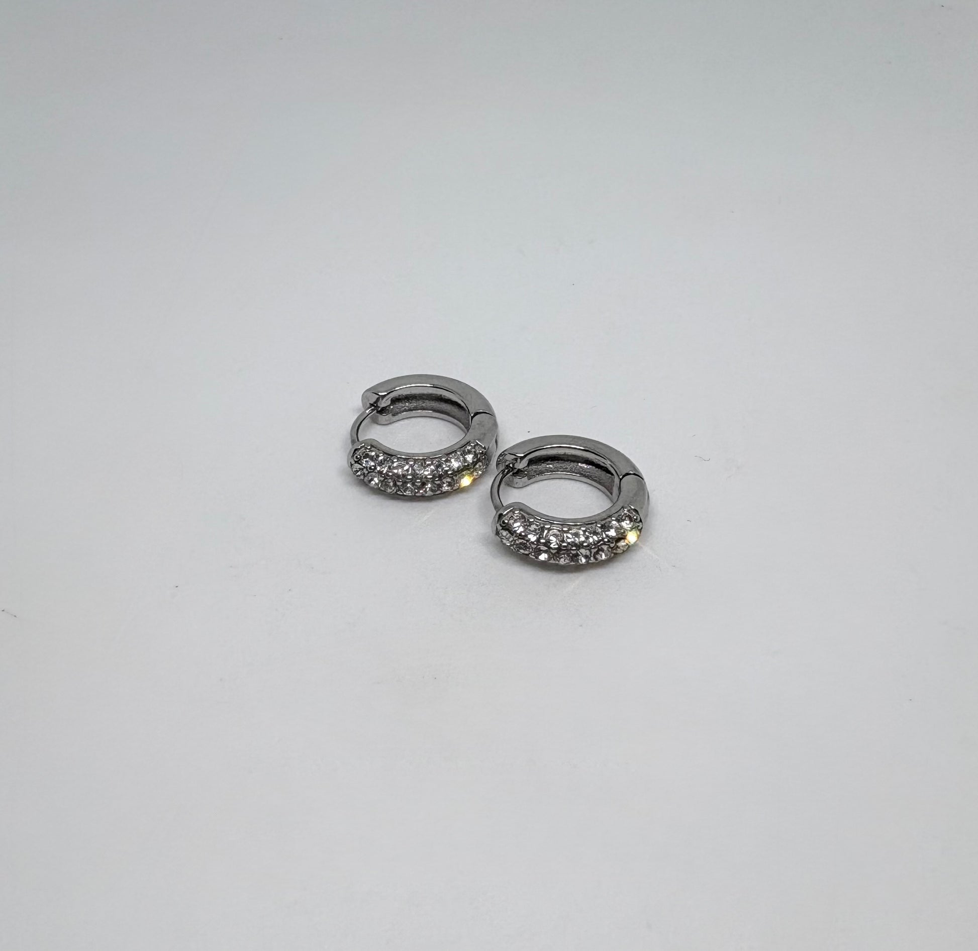 Stainless steel zilveren oorringen, met strass steentjes. Maat is ongeveer 17mm.
